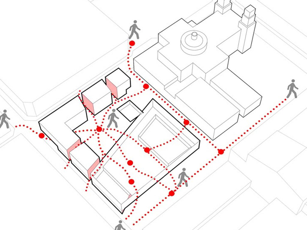 Nous observons les parcours empruntés par les visiteurs et le personnel, nous identifions les points de convergence où les visiteurs peuvent se regrouper, s’orienter, ou avoir besoin d’informations pour comprendre les chemins les plus fréquemment suivis et faciliter l’accès de la signalétique.